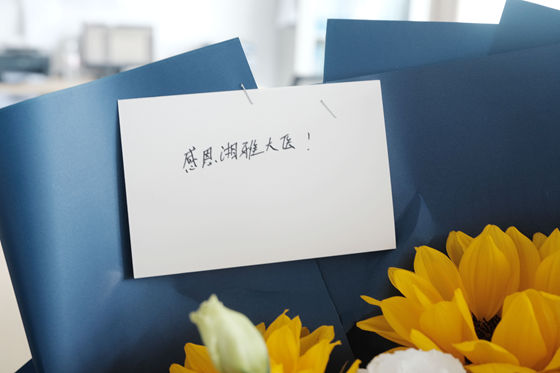 近日,湘雅常德醫(yī)院呼吸內(nèi)科病房內(nèi)洋溢著溫馨感人的氛圍。68歲的蔡叔叔因重癥肺炎入院治療多日,他和家屬對醫(yī)護團隊給予了高度評價:“這里的醫(yī)護人員像家人一樣關心我們,病房里滿是家的溫暖?!?/span>這份真摯的感激之情,更由蔡叔叔的清華北大校友會成員專程前來表達——他們將一束鮮花獻給呼吸內(nèi)科全體醫(yī)護人員,附贈的卡片上,“感恩湘雅大醫(yī)”幾個字力透紙背,凝聚著患者與親友最質(zhì)樸而莊重的謝意。