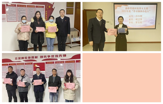 會上支部還公示了2021年度“學(xué)習(xí)強國”積分排名情況,為學(xué)習(xí)強國年度冠亞季軍、“優(yōu)秀小達人”、“進步之星”頒發(fā)了榮譽證書。通過對黨員黨性積分臺賬的量化考評和學(xué)習(xí)激勵制度,支部“學(xué)習(xí)強國”取得了顯著學(xué)習(xí)效果,滿足了互聯(lián)網(wǎng)條件下廣大黨員干部和人民群眾多樣化、自主化、便捷化的學(xué)習(xí)需求。